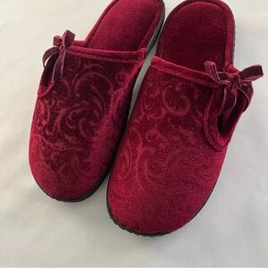Isotoner Valerie Scarlet Red Velour Hoodback Clog Slippers Size 7.5/8