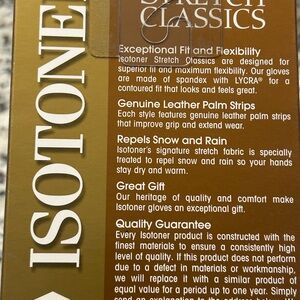 Sleek black gloves by Isotoner. Stretch fit for comfort. New in the box. Fleece lined black gloves with leather palms. New in the box!