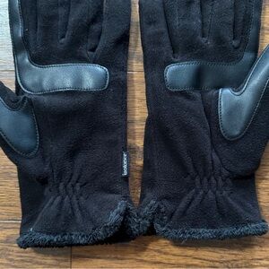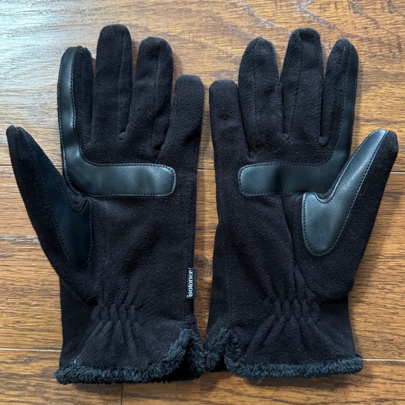 Isotoner Water Repellant Fleece Touchscreen Gloves, Black with Palm Patch