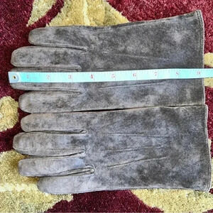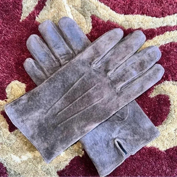 Isotoner Dark brown suede leather gloves with 3 points in wonderful condition! Thin black fleece lining.