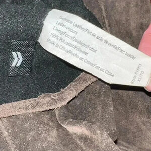 Isotoner Women’s Dark Brown Suede Gloves Thin Black Fleece Lining Size XL