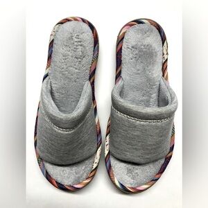 Isotoner Women’s Knit Slide Slippers, 7.5-8, Gray, Faux Fur.