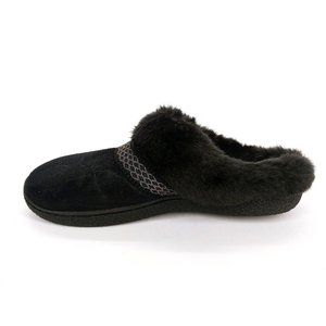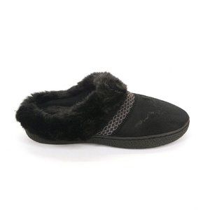 Isotoner Womens Mallory Microsuede Hoodback Slippers Clogs Faux Fur Black 6.5-7