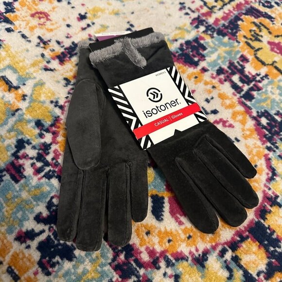 Isotoner Womens Micro Luxe Suede Casual Gloves Size Large Charcoal Classic Warm