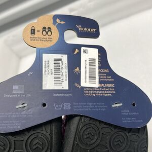 Give your feet much needed relief in the isotoner Recycled Popcorn Chenille Erin Slipper. Impact-absorbing heel cushion make these slippers and odor blocking antimicrobial materials make these slippers your perfect everyday relaxation companion. Plus, they're made from recycled materials so you can feel great doing your part for the planet!