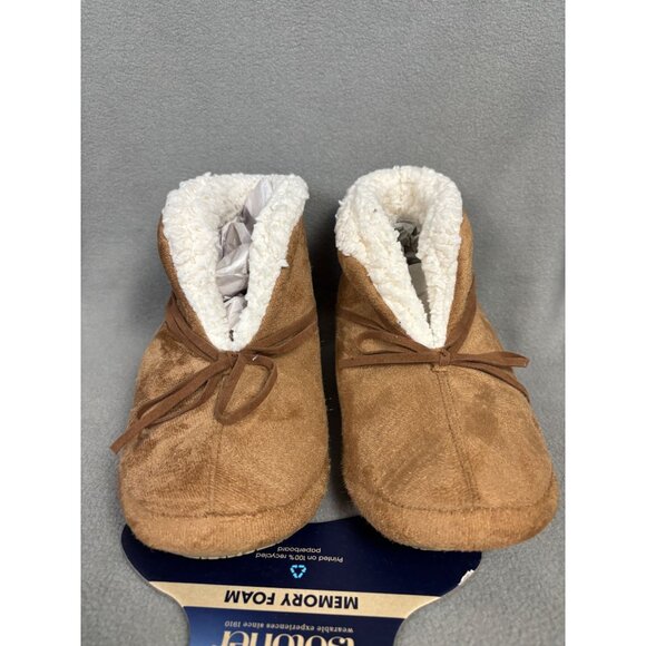 Isotoner Women's Rory Recycled Buck Skin Bootie Slippers 5-6 Small Brown NWT's