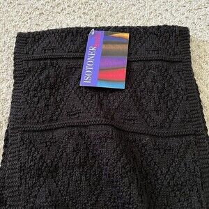 Isotoner Womens Scarf Jet Black Fringe Knit Cozy Winter Fall Textured OS NEW