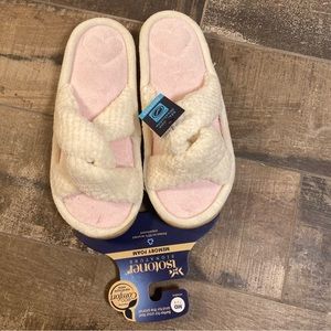 Isotoner signature memory foam machine washable terry knotted slippers in cream size MD (7.5-8)