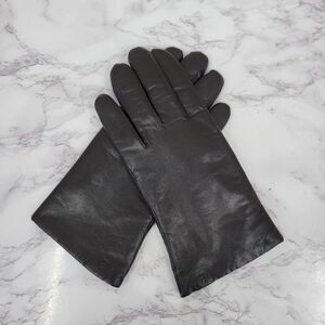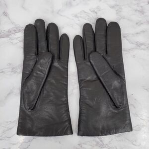 Elegant black leather gloves featuring a soft knit lining. Perfect for adding a touch of sophistication to any outfit.