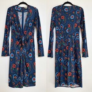 Issa London 100% Silk Plunging Deep V Long Sleeve Paisley Print Dress US 6
