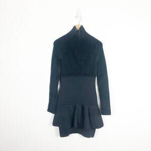 Issa London Black Heavy Ribbed Knit Long Sleeve Mini Dress Peplum Hem Size Medium
