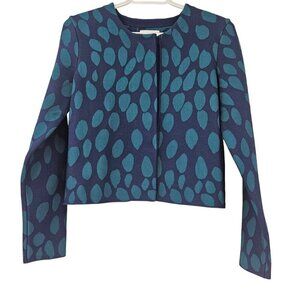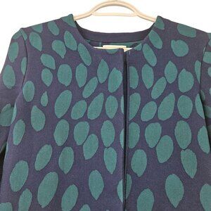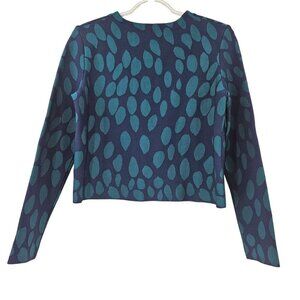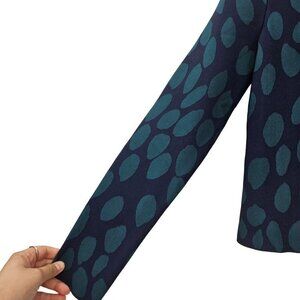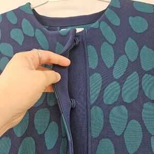 Issa Millie Fit And Flare Cardigan Teal Blue & Green Abstract Dot Print Cropped Round Neck Long Sleeve Snap Button Closure Women’s