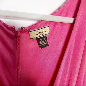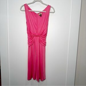 Issa London Ruched Silk Jersey Dress Plunge Neck in Punch Pink Size 6