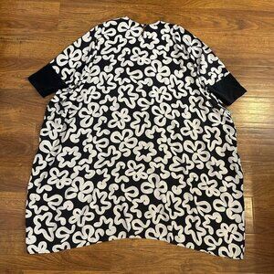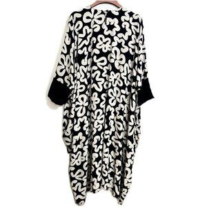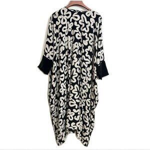 ISSA London black and white mod floral a-line lagenlook caftan dress