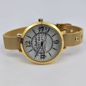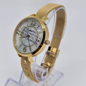 Issac Mizrahi Live Women's Watch 36MM Gray Dial Gold Case Mesh Band New Battery