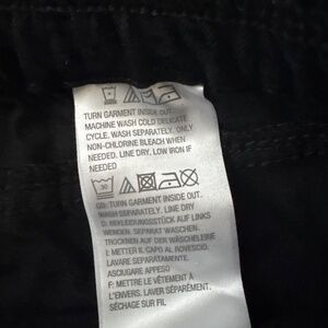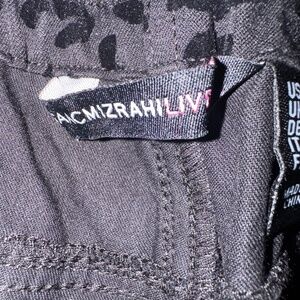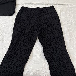 Black flocked cheetah print black pants with a pull-on elastic waist and two back pockets.