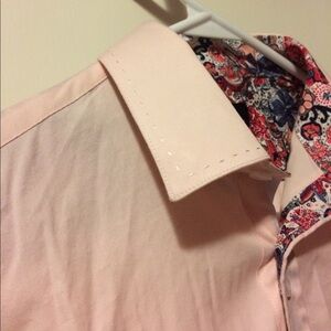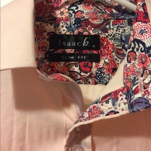 Women's pink Isaach shirt size small. This shirt is 100% cotton and it is machine wash cold. It's from a smoke free home.