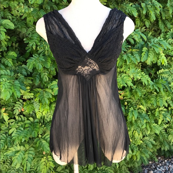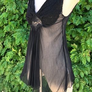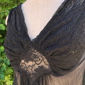 Black sheer top with lace and sequin detail. Worn once