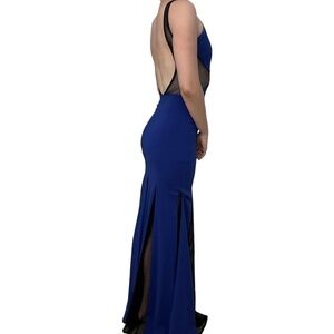 Issue New York Dress Long Trumpet Cut Out Mesh Royal Blue Prom Size Extra Small