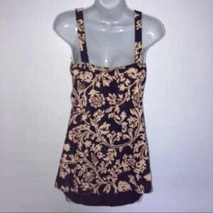 It Figures One Piece Plus Size Swimsuit 18W Tan Navy Blue