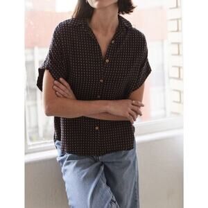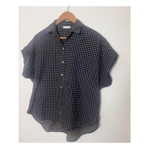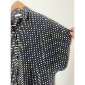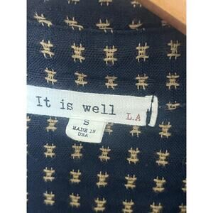 It Is Well LA Dobby Button Front Cotton Shirt Size Small Navy Brown Embroidered