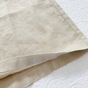 100% linen pull on wide-leg cropped pants in natural beige color.
