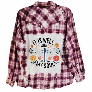 It Is Well With My Soul Custom Christian Upcycled Plaid Shirt, Women's 2X
