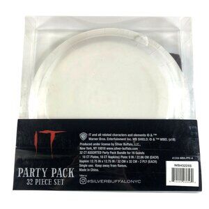 It Pennywise 32 Piece Party Pack Paper Plates Napkins Clown Horror Movie NEW