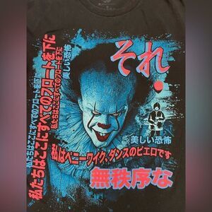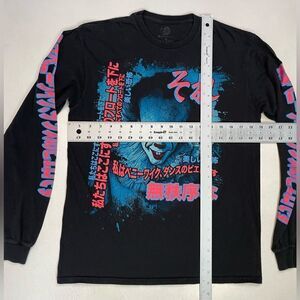 It The Movie Kanji Text Pennywise Graphic T-shirt Men Medium Black Long Sleeve