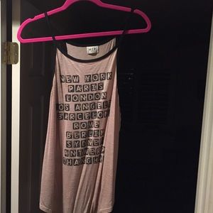 Cute Loose fitting tank. Extremely soft fabric a tan color with major cities written in black. :) no tags, worn once