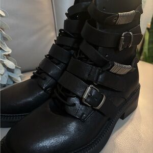 Step out in style with these chic black leather boots. Featuring a unique buckle design, they offer both fashion and comfort. Perfect for any occasion.