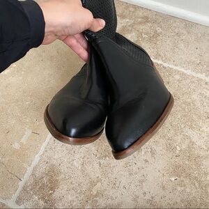 Italeau Black Leather Eyelet Perforated Waterproof Shin High Pointed Boots