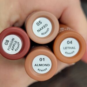 Italia Deluxe Mousse Matte Liquid Lipsticks Set of 4 08 Poison Apple 05 Naked 04 Lethal 01 Almond 7/25 Bin 103