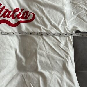 Good condition. Never worn. See photos for details and measurements. No major flaws. Show your style with this Italia white t-shirt. Perfect for casual outings.