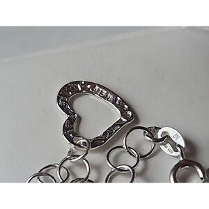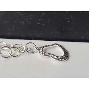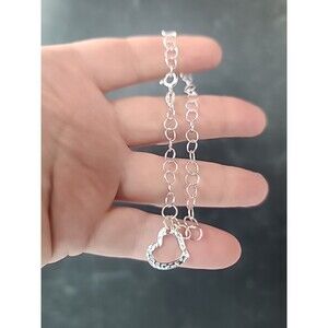 Italian 925 Sterling Hammered Silver Open Heart Charm Chain Bracelet Vintage