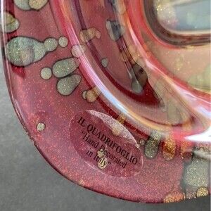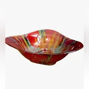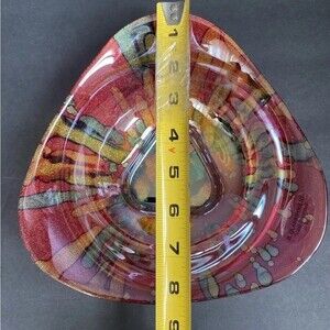 Art Glass 8” Triangle Bowl Glitter Bottom Pink Red Teal Swirl il Quadrifoglio.