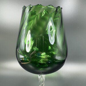 Italian Art Glass Tall Emerald Green Sniffer Candle Holder Votive Compote Italy