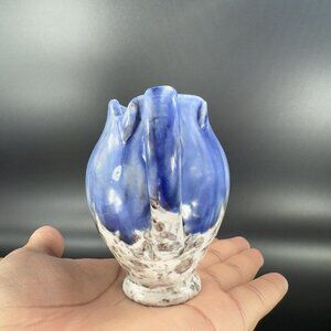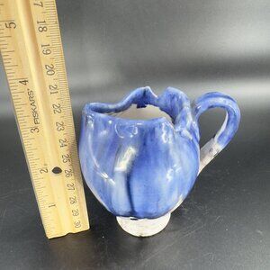 Italian Art Pottery Small Pitcher Creamer Drip Glaze Folded Edges Specked Inside