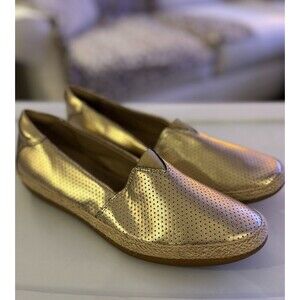 Italian Beautiisoles Leather Womens Flat Loafers Womens Sz 13 Gold Silver