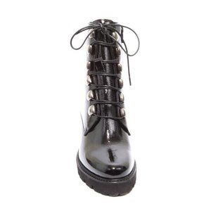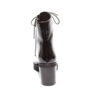 Italian Black Patent Leather Lace-Up Zip-Up Ankle Heel Boots