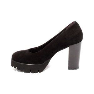 Italian Black Suede / Leather Platform Heel Shoes Pumps