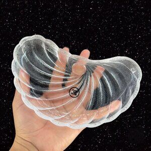 Italian Clear Glass Shell Shaped Dish Plate Set 4 Textured Glass Made In Italy