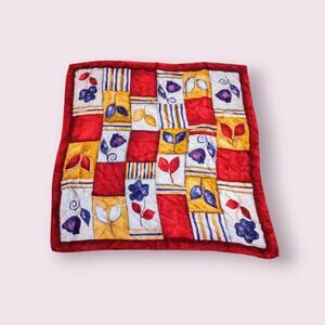 Italian Colorful 100% Silk Scarf Floral/ Checkered Pattern Made in Italy