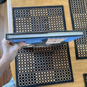 ~ Has tan and white stains on the dust jacket and on the book (please see picture).