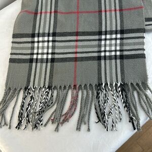 Italian Design Cashmere Viscose Blend Gray Tartan Scarf