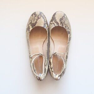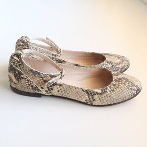 Gorgeous snakeskin ballerinas from Italian designer Paolo Castignani. Crafted from genuine high quality leather, these gorgeous flats feature round toes and an adjustable ankle strap with buckle closure. Neutral beige and brown color scheme. Very comfortable shoes that will never go out of fashion and will match most of your spring / summer / fall outfits. Great for work, office, business meetings, college, dates, parties and so much more.