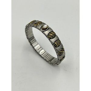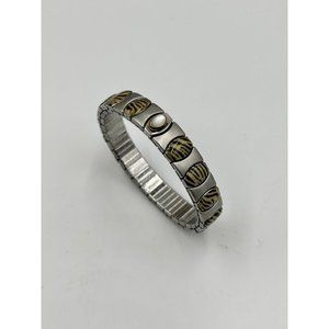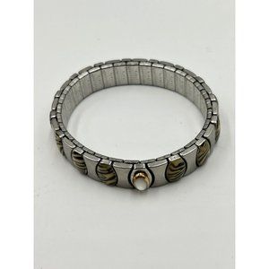 Italian Dolceoro Vintage Stretch Bracelet Elastic Stainless Steel w/ Gold Accent