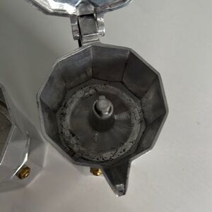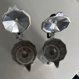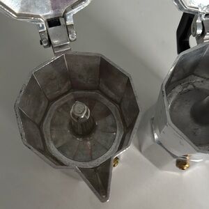 Cute little espresso makers, to be used as decor in a farmhouse or Italian cottage kitchen. Super cute, with signs of use and patina.