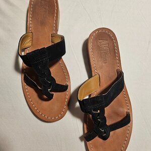 Made and purchased in Sorrento Italy. Euro size 40, I wear a size 7 1/2 US and they were measured to fit. Only worn twice.