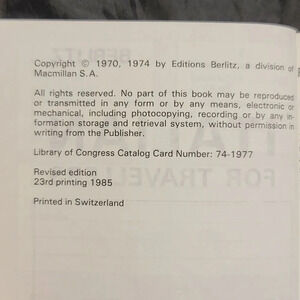 Berlitz Italian For Travellers paperback copyright 1985 23rd printing